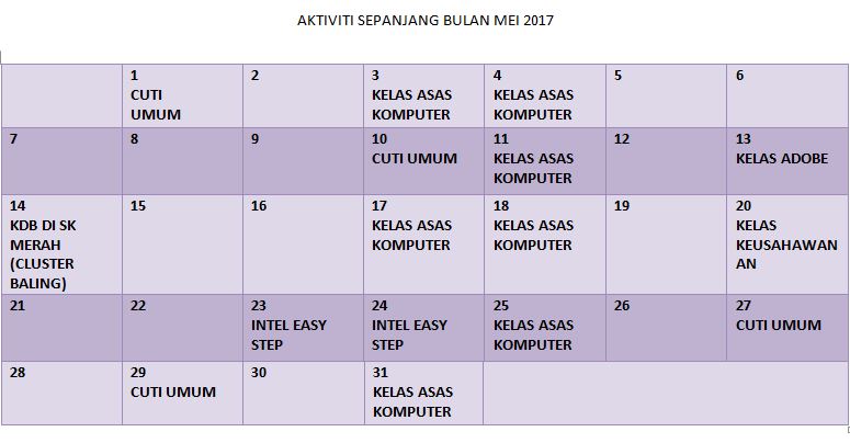 JADUAL AKTIVITI MAY 2017